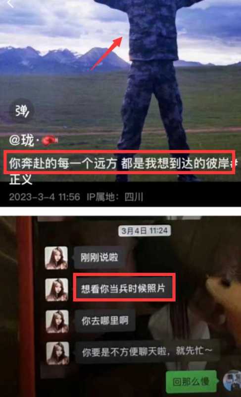 公开发声后,果果还点赞了网友动态,发现王龙之前发布的动态原来是给小三莎莎发的,莎莎说想看王龙当兵时候的照片,半个小时后王龙就在自己的账号中发了照片,还写下暧昧文案“你奔赴的每一个远方,都是我想到达的彼岸。”