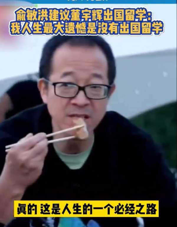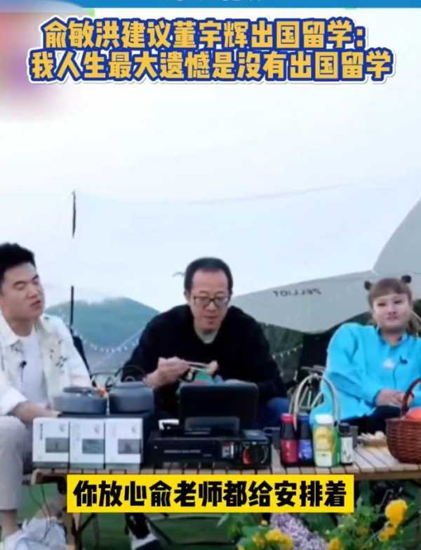 4月19日,在东方甄选看世界直播间中,俞敏洪表示,自己人生中最大的遗憾是没有出国留学,到国外接受2-3年的留学教育,并建议董宇辉出国留学。对此,董宇辉表示,“俞老师之前都给我规划过了,帮我选了全球最顶尖的几所学校。”