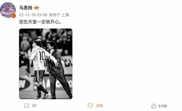 马思纯在配文中便直言“那么多年,终于等到!!!太不容易了”,并配上马拉多纳在36年前带领球队在德国世界杯夺冠的照片,不免让大家回忆到过去。可惜的是,马拉多纳在2020年时因心梗去世,没能看到这一幕。