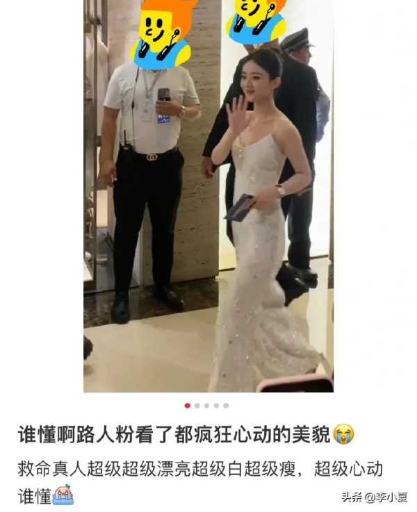 赵丽颖一亮相便引发一阵惊呼,一袭白色吊带长裙勾勒出她窈窕纤细的身姿,丸子头甜美,白玉发簪又增古典优雅。