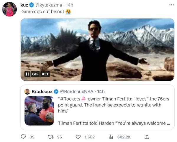 Keith Pompey还专门谈到火箭老板费尔蒂塔非常喜爱哈登,期待与哈登重聚。