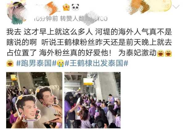 笑不活了!已知跑男去泰国录节目了,于是王鹤棣家就开始吹,这群接机穿紫色衣服的都是是他的海外粉丝。