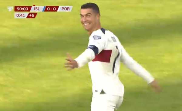 第43分钟,坎塞洛左路起球传中,C罗门前一米头球攻门,被门将鲁纳尔松神奇化解。