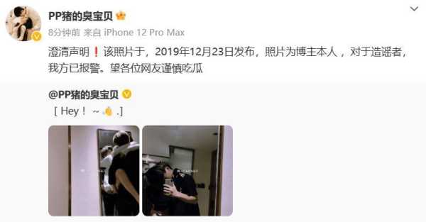 7月3日下午,针对网友的再度爆料,蔡徐坤也发声否认:“纯属造谣,这不是我!”随后,疑似蔡徐坤亲密照的当事人报警,并发布澄清声明:“该照片于2019年12月23日发布,照片为博主本人 ,对于造谣者,我方已报警。望各位网友谨慎吃瓜。”