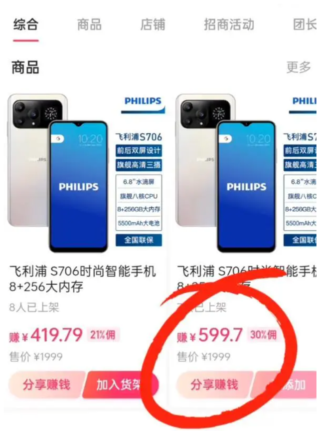不久之后,神通广大的网友,就发现了里面的套路,如果你去某东搜这款手机,显示的价格肯定是8999,但这只不过是,手机品牌官方为了配合嘎子直播,而临时改的价格,是双方联合演的一个戏而已。而嘎子直播间的同款手机,分享卖出去一单就能赚599元,嘎子大概卖了14000单,含泪赚了800多万!