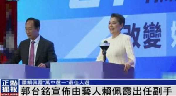 郭台铭说,赖佩霞是他选择竞选搭档的唯一人选,将依赖其女性视角,为台湾打造更公平对等的两性文化。郭台铭表示,赖佩霞是台湾暨南大学法学博士,有着丰富的经历,对政治领域毫不陌生,希望借由赖佩霞的沟通技巧凝聚台湾社会集体共识,让台湾走向团结。