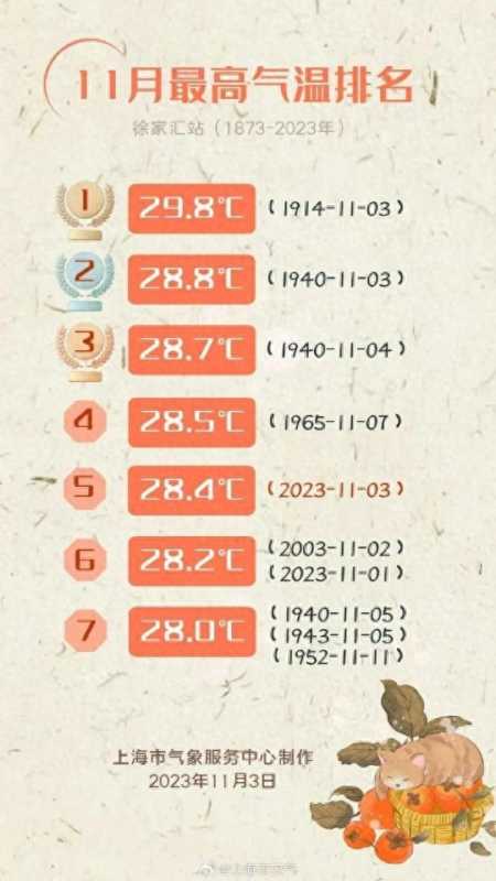 4日至5日白天上海气温仍较高,最高气温28~29℃;5日夜间冷空气开始影响本市,气温逐步下降,5-7日48小时最低气温降幅8~10℃,过程最低温度出现在7日早晨,市区最低气温12℃左右,郊区9~11℃。