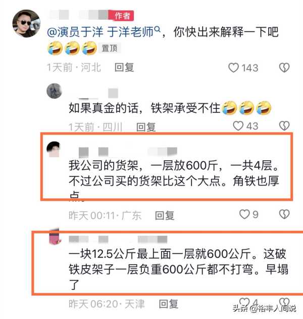 抛开这一点不谈,一块金砖的重量按50斤来算,那么一层就有2000斤,也就是一吨,三层三吨,这个重量如果用这样的置物架恐怕难以承受,基于这样的原因,很多网友觉得这些金砖都是道具。