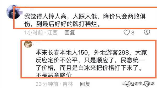 回来后的第一件事情就是将长春冰雪新天地的门票价格打了下来,以往长春本地人是150,外地近300,白冰宣传完之后,统一价格150元,寓意则是长春与全国人都是一家人,不应该有这样的价格差。