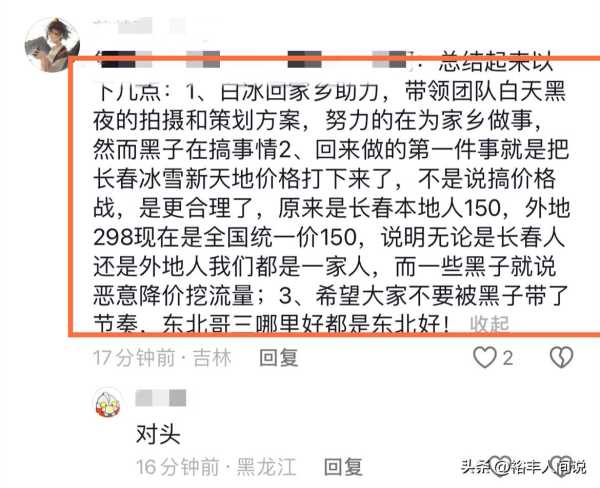 这也是网红白冰不理解的原因。因为他确实是为吉林的旅游业助力,所谓的“抢资源”其实根本不存在。