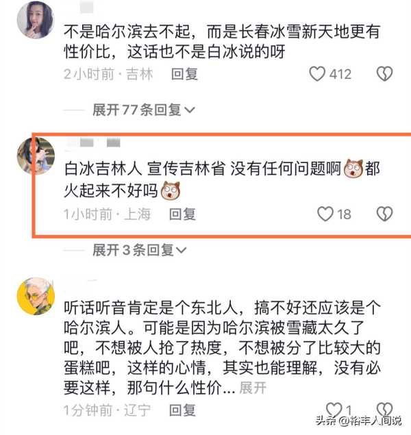 基于这样的理解,很多网友总结这位抨击白冰的哈尔滨网友:我吃肉可以,兄弟你别想捞我口汤喝,这格局可以。