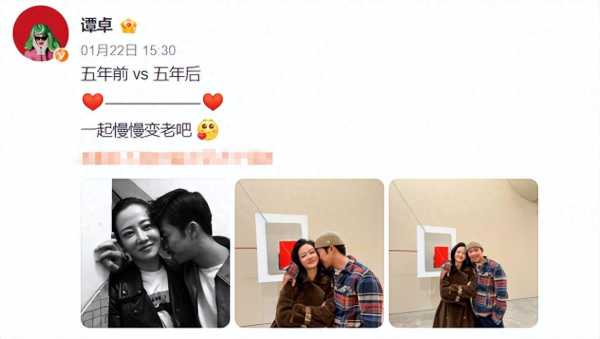 1月22日,演员谭卓更新了动态,晒出与饰演“黄毛”的男演员章宇合影,她配文“五年前VS五年后,一起慢慢变老吧。”这条动态一经发布,评论区就热闹个不停,有送祝福的,还有网友难以置信的,猜测她是不是在官宣恋情。