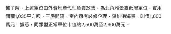 黎淑贤生前所住的这套房子,在香港也能称为豪宅,因为实用面积达到1035平方尺(约合96平方米),属于三房间隔单位,刚好符合黎淑贤现在的家庭所居住——她与第二任丈夫育有两个儿子,一人一个房间。这套房子的室内装潢非常不错,从黎淑贤从前晒出的屋内结构就可知,另外,景观也很好,能够望到维港海景,只可惜黎淑贤在此轻生,令这套房产的市值打到折扣,给业主造成了困扰,所以也不是不能理解业主急忙卖房的心情。