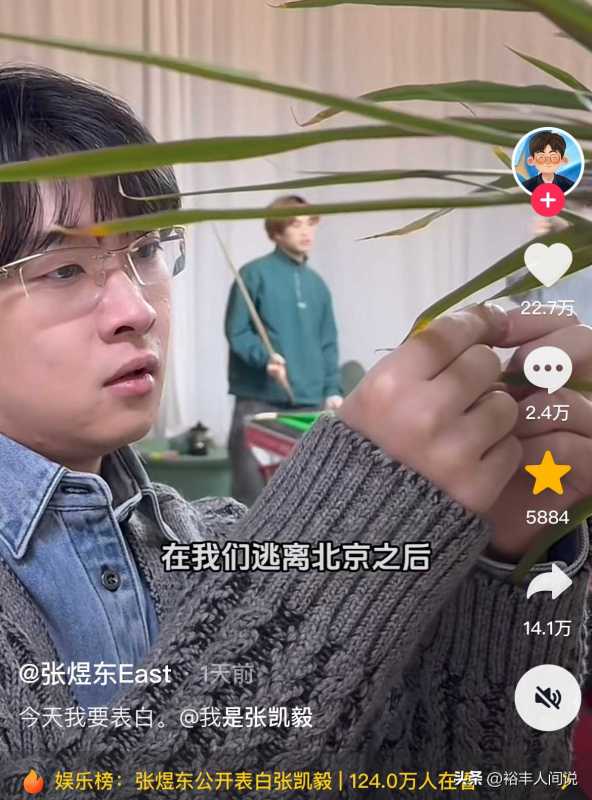 2月1号,拥有百万粉丝的网红张煜东公开表白张凯毅,并在留言处感慨的说道:今天我要表白。