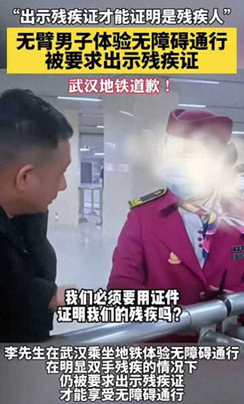 无臂男子乘坐地铁被工作人员拦住,让他出示残疾人证件来证明自己是残疾人,这事可闹大了!