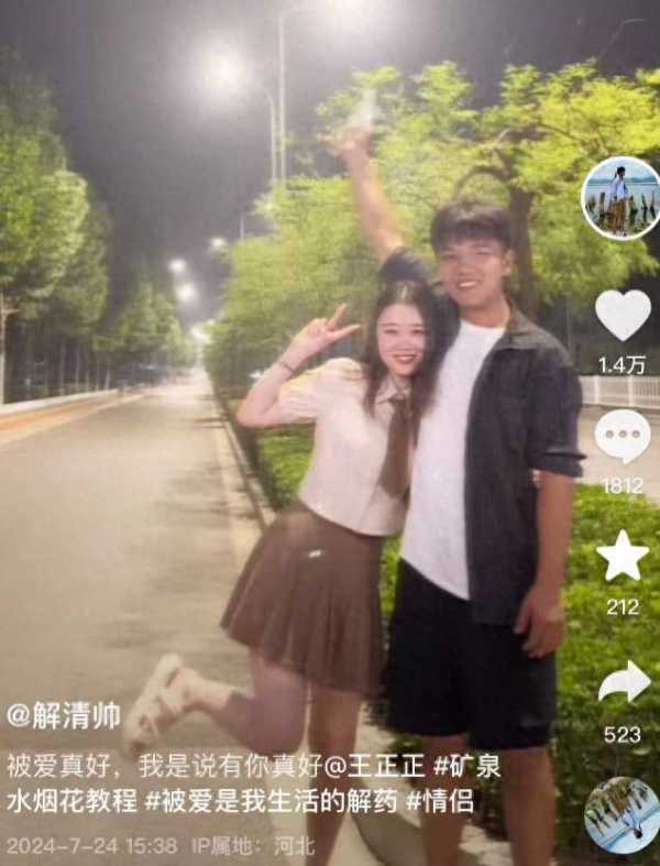 7月24日下午,解清帅在抖音“官宣”女友。“被爱真好,我是说有你真好!”解清帅在网上发布与女友王正正的合拍视频,并@王正正。此前,解清帅曾多次在直播中提到自己拥有女朋友,但始终未透露其真实姓名。